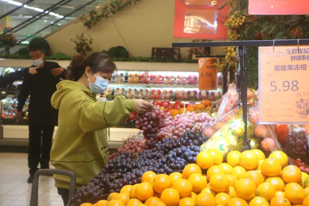 针对封控小区,门店线上多平台开放,采取“线上下单、配送自提” “线上下单、集中配送”的服务方式,满足封控小区居民对蔬菜水果、肉禽鸡蛋、米面粮油等各类民生商品的在线选购需求。