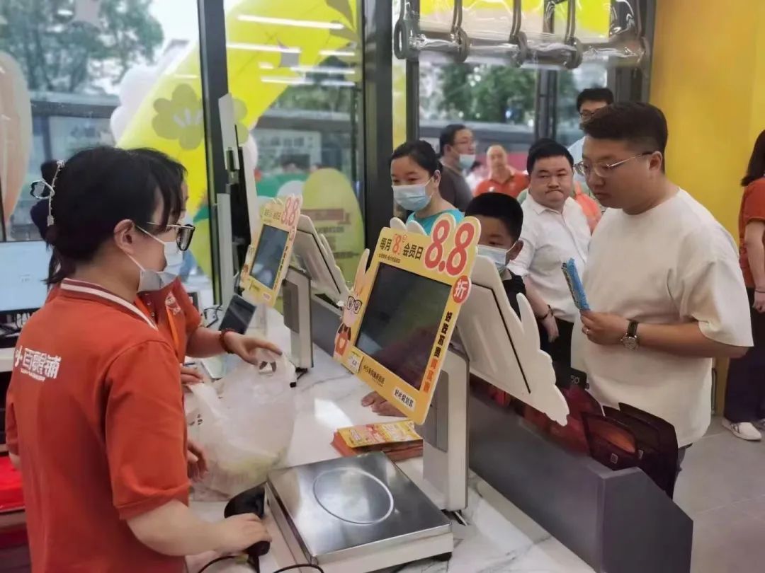 开业当日,门店客流如织,顾客来往穿梭络绎不绝,一派热闹景象。店外印着热门商品的宣传牌展示着各类诱人活动,与店内琳琅满目的商品相映成趣。品种繁多又经济实惠的各类商品立即掀起了抢购热潮,顾客纷纷采买,抢购心仪商品。门店创新营销推广方式,专属歌曲定制、宣传视频融媒体上新、现场COSPIAY、朋友圈转发、公众号连载,丰富的商品、合适的价格、劲爆的活动,为门店顺利开业提供坚实保障。