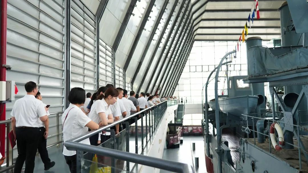 在中山舰博物馆,党员们面向党旗,庄严重温入党誓词,重忆初心使命。集团党委现场对“两优一先”先进代表进行表彰,集团领导为先进代表颁发奖牌、证书。博物馆里一件件珍贵完好的文物、一幅幅庄严神圣的图片、一幕幕栩栩如生的历史场景,带大家穿越时空了解了中山舰的历史背景、风雨历程,深刻体悟到不屈不挠、奋斗不息的中华儿女们坚强的斗争精神。