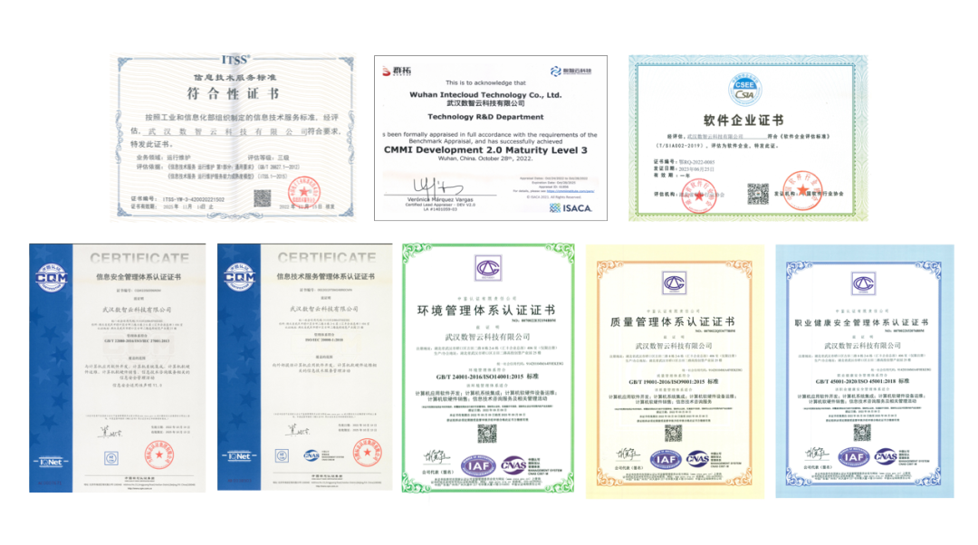 数智云科技公司自成立以来,一直致力于内生能力建设和科技创新工作,不断探索商业全渠道、供应链协同、智能物联、大数据应用等领域,全力研发零售科技的创新应用,助力客户企业数字化转型和高质量发展。通过自身能力建设,已拥有ioses质量管理五体系认证、ITSS信息技术服务标准三级认证、CMMI软件能力成熟度三级认证等多项权威机构认证资质。同时,成功入选了武汉市首批数字经济服务资源池企业、2023年科技型中小企业认定。