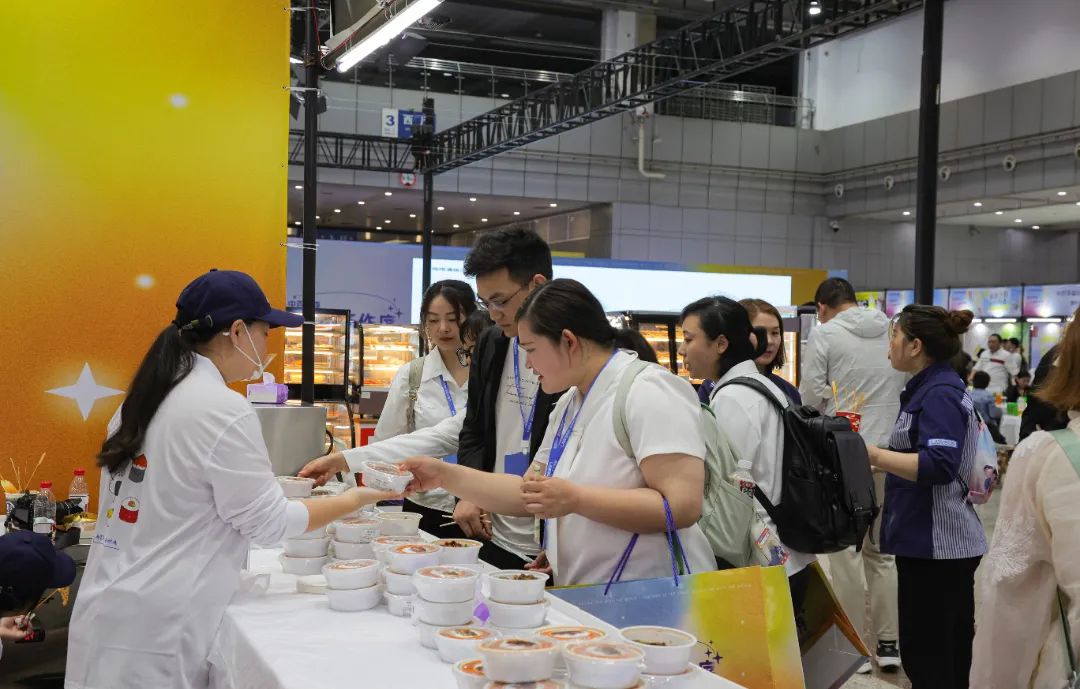 展会现场人气爆棚,自制奶茶、熬点、钵钵鸡、蛋挞、定制款绿豆冰沙等自有鲜食展位格外引人注目,各种新品陈列饱满、香气袭人,吸引参展嘉宾现场品尝。