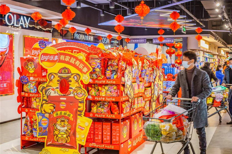 社区超市业态开展“虎跃迎春”、“金虎贺岁”系列春节营销活动,600余家社区门店“就在您身边”,为顾客走亲访友、亲朋相聚的即时性购物需求提供品种丰富、价格实惠的便利服务,实现整体销售逆势增长。